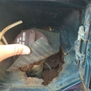 При повороте ключа в первое положение начинает течь бензин под правой задней дверью.