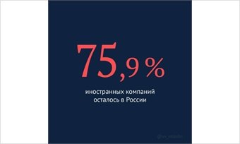 Председатель Госдумы РФ Вячеслав Володин в своём Telegram-канале написал, что 75,9% иностранных компаний осталось в России.