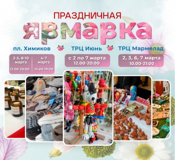 Со 2 по 10 марта на площади Химиков пройдет ярмарка выходного дня. Время проведения: в будни с 15.00 до 19.00, в выходные — с 12.00 до 20.00.
