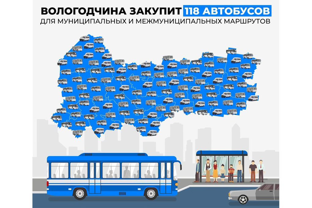 Впервые для районов и округов региона организованно закупят 118 автобусов. Пассажирский транспорт общего пользования обновят за счет специального казначейского кредита, предусмотренного Вологодской области в размере 500 миллионов рублей. Федеральные средства выделят по поручению Президента РФ.