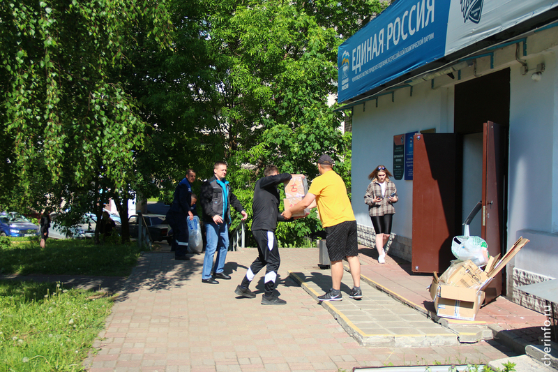 Сегодня у городского отделения «Единой России» на Сталеваров, 42 и «Алмаза» загрузили фуру и несколько «Газелей».