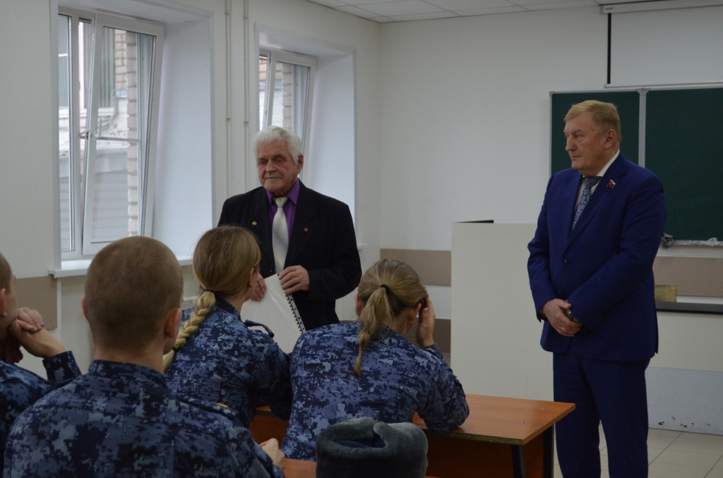По инициативе заместителя Председателя Вологодской городской Думы Сергея Чуранова ведомственный институт посетил полковник Главного разведывательного управления в отставке Игорь Лаврентьевич Бурнусов. Почетный гость поделился с курсантами воспоминаниями о службе, рассказал о судьбах фронтовых и войсковых разведчиков и парадах 7 ноября 1941 года, прошедших в Москве, Самаре (Куйбышеве) и Воронеже.