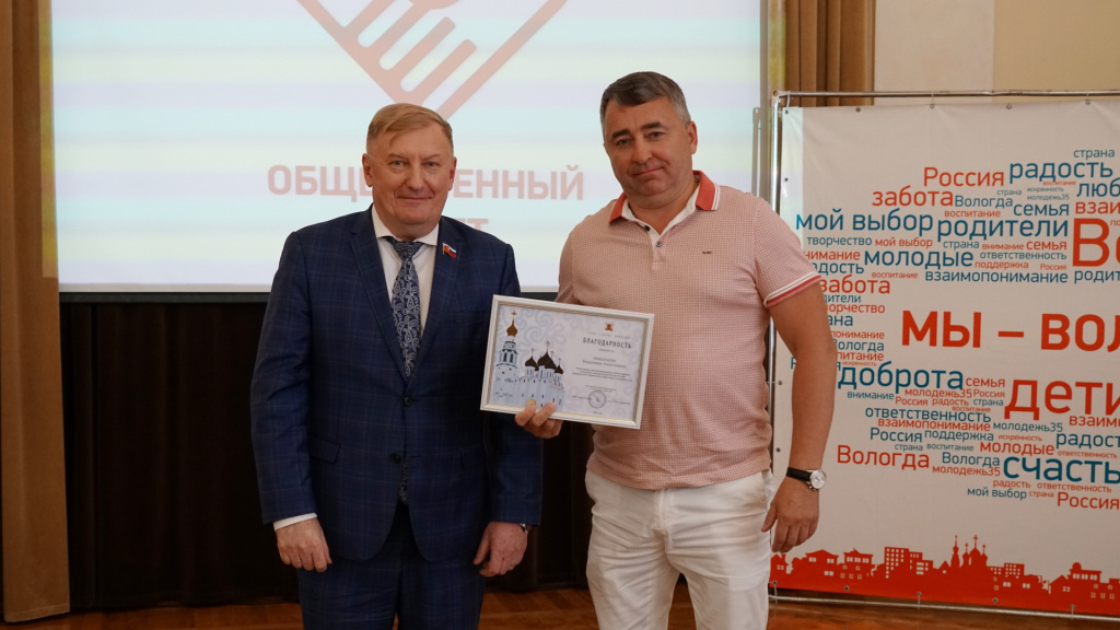 За свой труд члены совета получили награды от Главы и Мэра города. По поручению Главы Вологды Юрия Сапожникова заместитель Председателя городской Думы Сергей Чуранов вручил лучшим общественникам городские награды. Свои призы получили и лауреаты ежегодной премии «Мы – вологжане! Мы активны!». Она состоялась в третий раз, поступило 10 заявок. Победителей выявляли в пяти номинациях: «Зелёный город», «Мы помним!», «Добрая Вологда», «Культурная столица», «Вологда фестивальная».