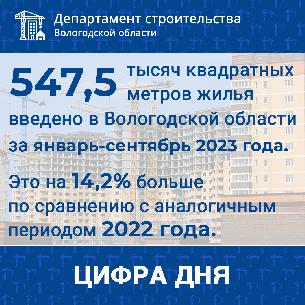 Показатель по вводу жилья в регионе за январь-сентябрь 2023 года составил 547,5 тысяч квадратных метров.