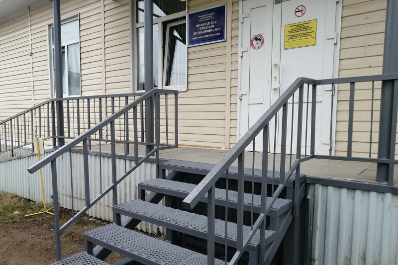 Обновленное крыльцо офиса врача общей практики в микрорайоне Прилуки Вологды прошло приемку общественным контролем