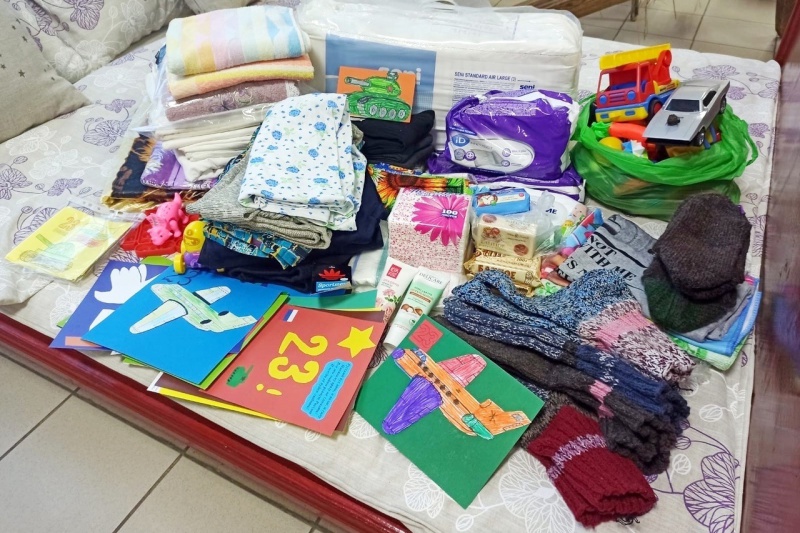 Посылки были собраны и для вологжан, находящихся в зоне СВО. Это спальные мешки, вязаные носки, десятки детских трогательных посланий в виде открыток, маленькие иконы с молитвами и многое другое.