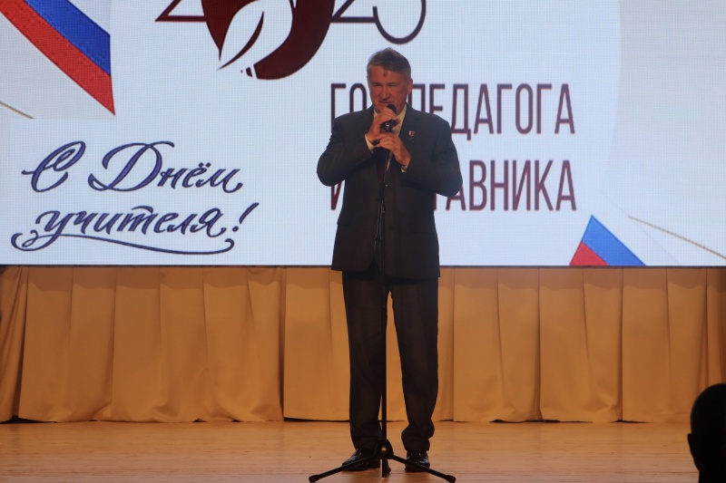 «День учителя – особый праздник, который мы отмечаем с чувством признательности и благодарности. Именно учитель оказывает значительное влияние на воспитание и формирование личности человека, прививает чувство гордости за свою Родину, - отметил Юрий Воробьев . - Считаю, что миссия педагога самая главная в этом мире, потому что не может быть хорошего врача, спасателя, офицера, солдата, если у него не было достойного учителя».
