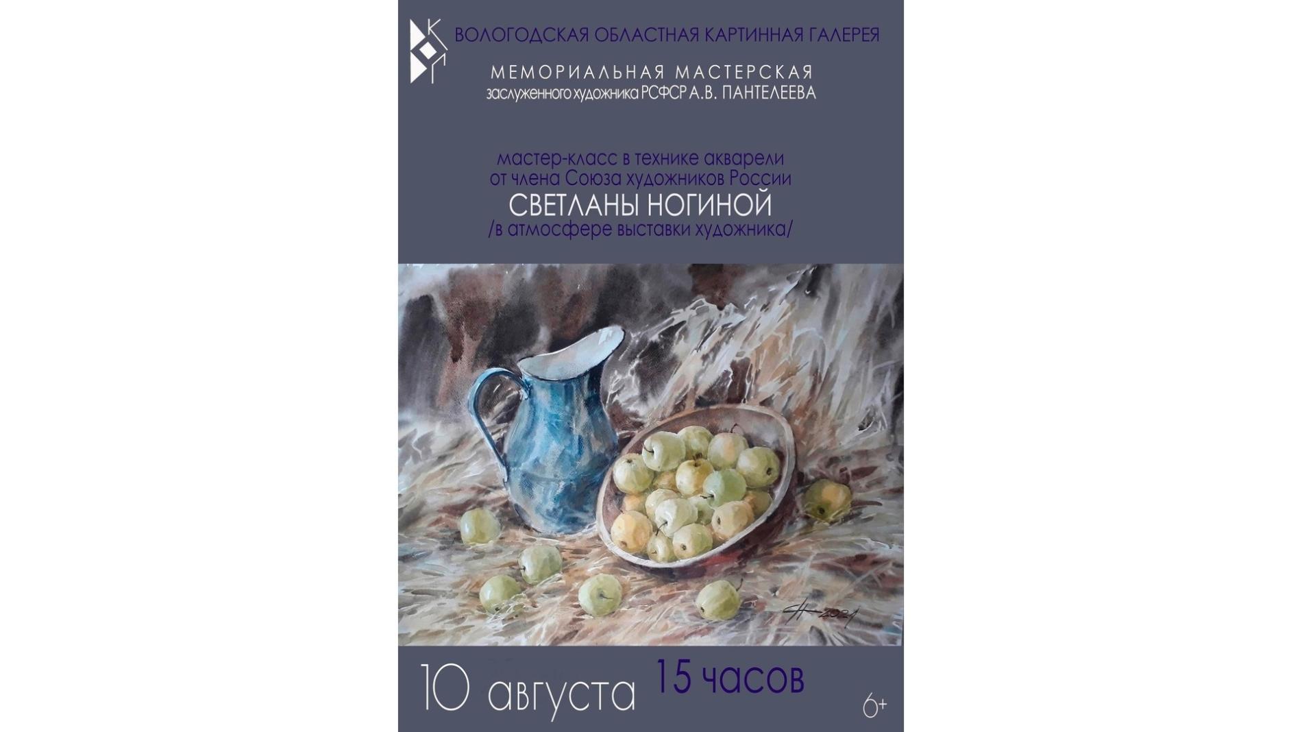 В Мемориальной мастерской А. В. Пантелеева 10 августа состоится творческая встреча с художником Светланой Ногиной, на которой она проведет демонстрационный мастер-класс в технике акварели