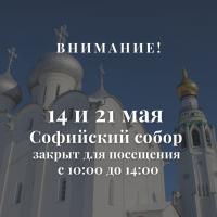 Внимание! 14 и 21 мая Софийский собор закрыт с 10:00 до14:00