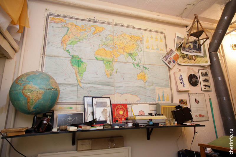 Всего в частном музее около 300 экспонатов: готовальни, логарифмические линейки, счеты из Череповецкого учительского института, немецкий механический калькулятор XIX века, динамо-машина, старые весы, журналы, книги, чернильницы-непроливайки, старые гербарии, транспортир 1892 года и препарированные скелеты животных.