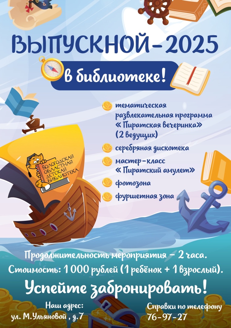 Вологодская областная детская библиотека начала принимать заявки на проведение выпускных вечеров в детских садах и начальных школах. Это замечательная возможность для детей и их родителей отпраздновать важный этап в жизни юных выпускников.