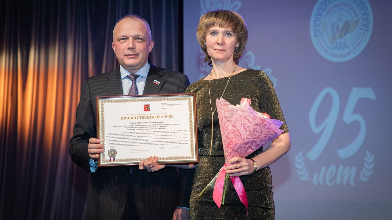 Награды получили лучшие педагоги и мастера колледжа, среди них Галина Николаевна Рысева и Елена Валериевна Романова. От имени Председателя ЗСО Андрея Луценко директору колледжа Алле Косьевой был вручен Приветственный адрес.