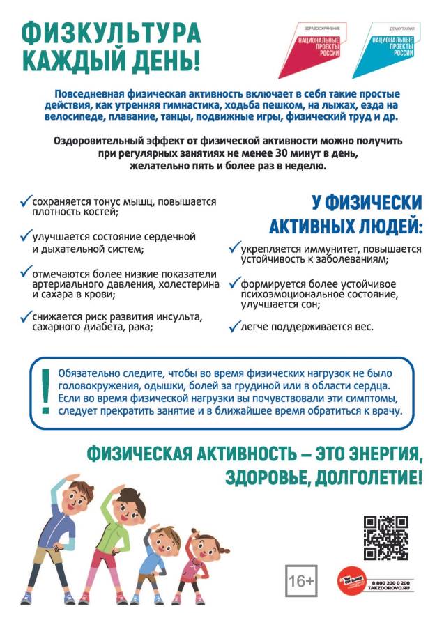 - физическая активность положительно влияет на здоровье сердечно-сосудистой системы;