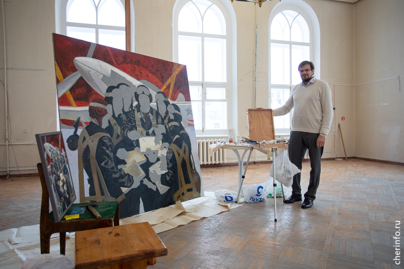 Полотно размером почти два на два метра начал писать 14 февраля в Художественном музее преподаватель Российской академии художеств Александр Новосёлов. Художник закончит картину к 18 февраля и подарит ее Череповцу.