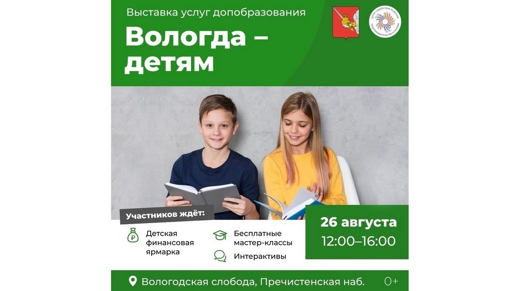 Выставка услуг дополнительного образования «Вологда – детям» пройдет 26 августа в «Вологодской слободе» с 12:00 до 16:00.