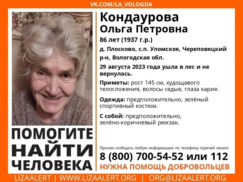 Напомним, портал «Вологда-Поиск» подробно описывал процесс поисков Ольги Кондауровой из Плоскова Череповецкого района.