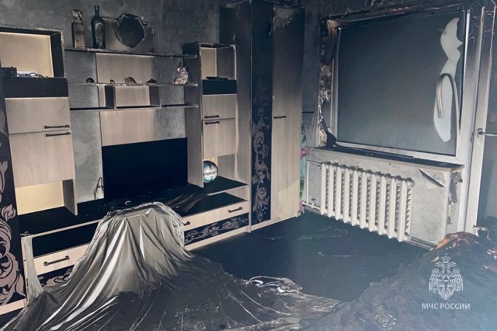 На проспекте Победы, 146 загорелась квартира на втором этаже. Общая площадь пожара — 15 квадратных метров. Повреждены диван и внутренняя отделка комнаты. Квартира закопчена по всей площади.