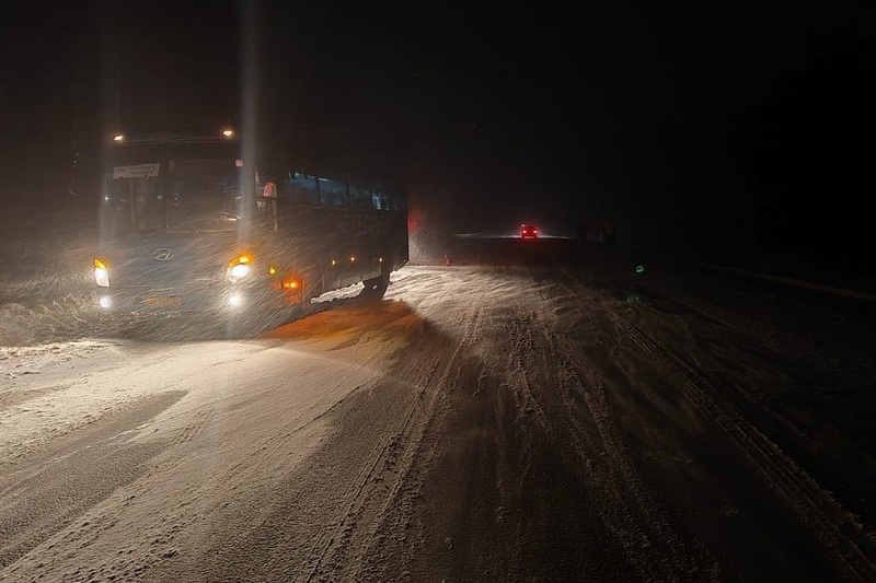 Автобус по касательной столкнулся с лосем. В салоне находились 12 пассажиров. Никто не пострадал, транспорт на ходу.