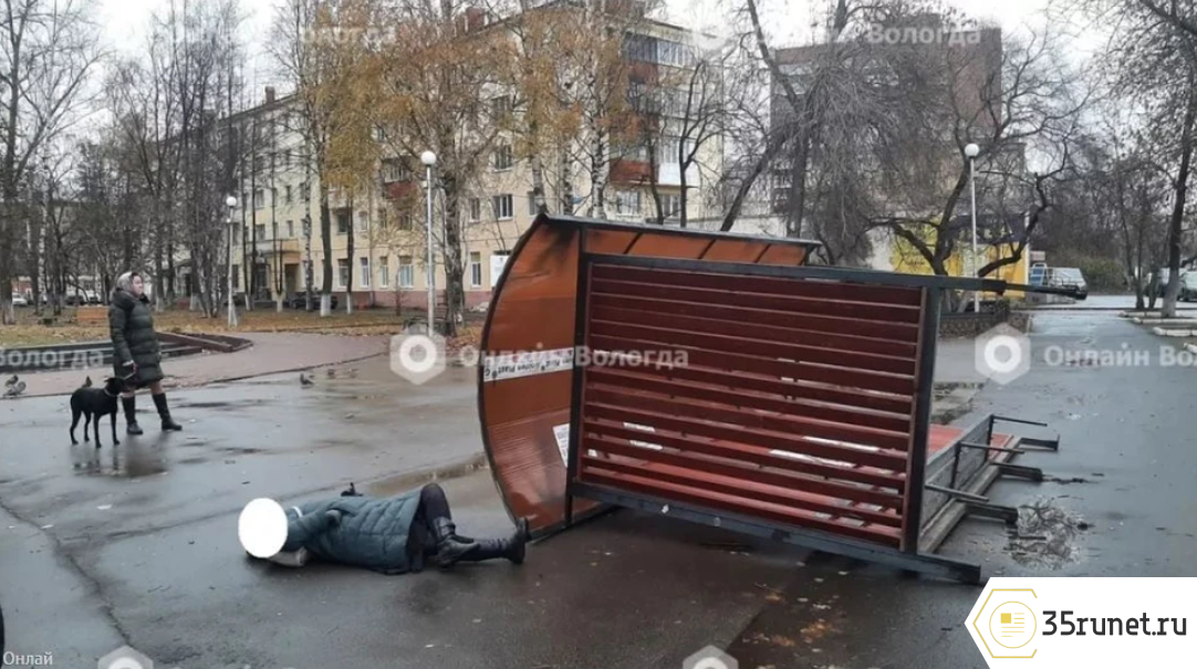 В Вологде от ветра остановка рухнула на женщину