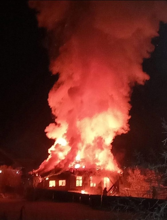 Дом сгорел полностью, об ущербе и о силах пожарной охраны, которые привлекались к тушению, ничего неизвестно.