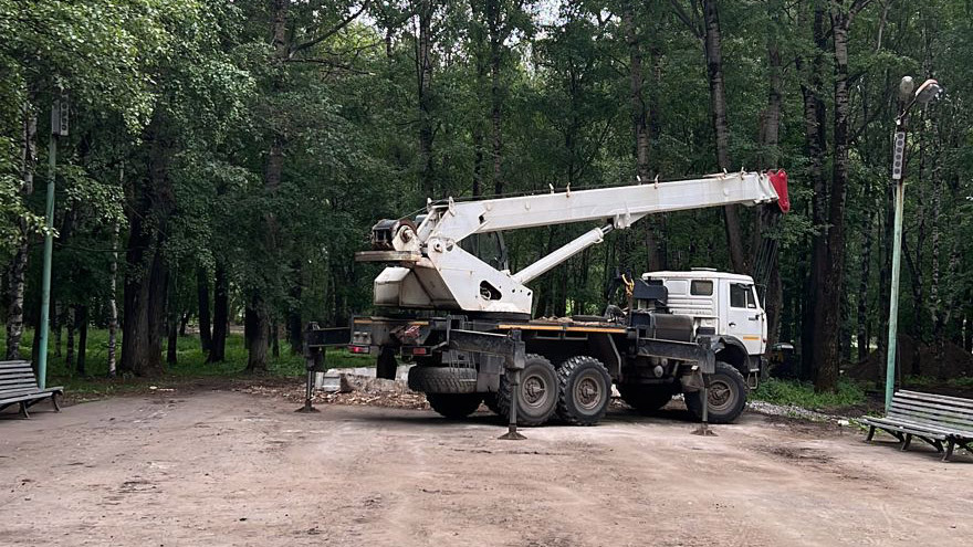 К ремонту и расширению сцены приступили в благоустраиваемом парке Ветеранов в Вологде