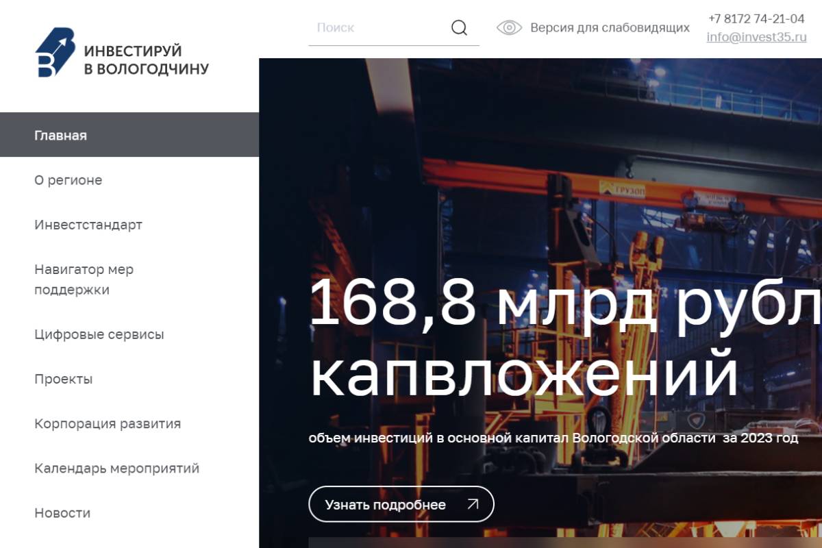 Важно отметить, что инвестиционный портал Вологодской области стал более доступным и удобным для пользователей, что будет способствовать привлечению инвестиций в регион и развитию местной экономики.
