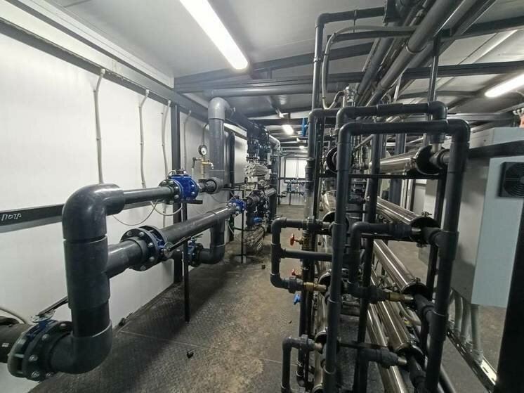 Специалисты построили два резервуара чистой воды, накопитель для сточных вод, внутриплощадочные сети водоснабжения и водоотведения, а также построили водопроводные сети протяженностью более 2,5 километров до Стризнево.