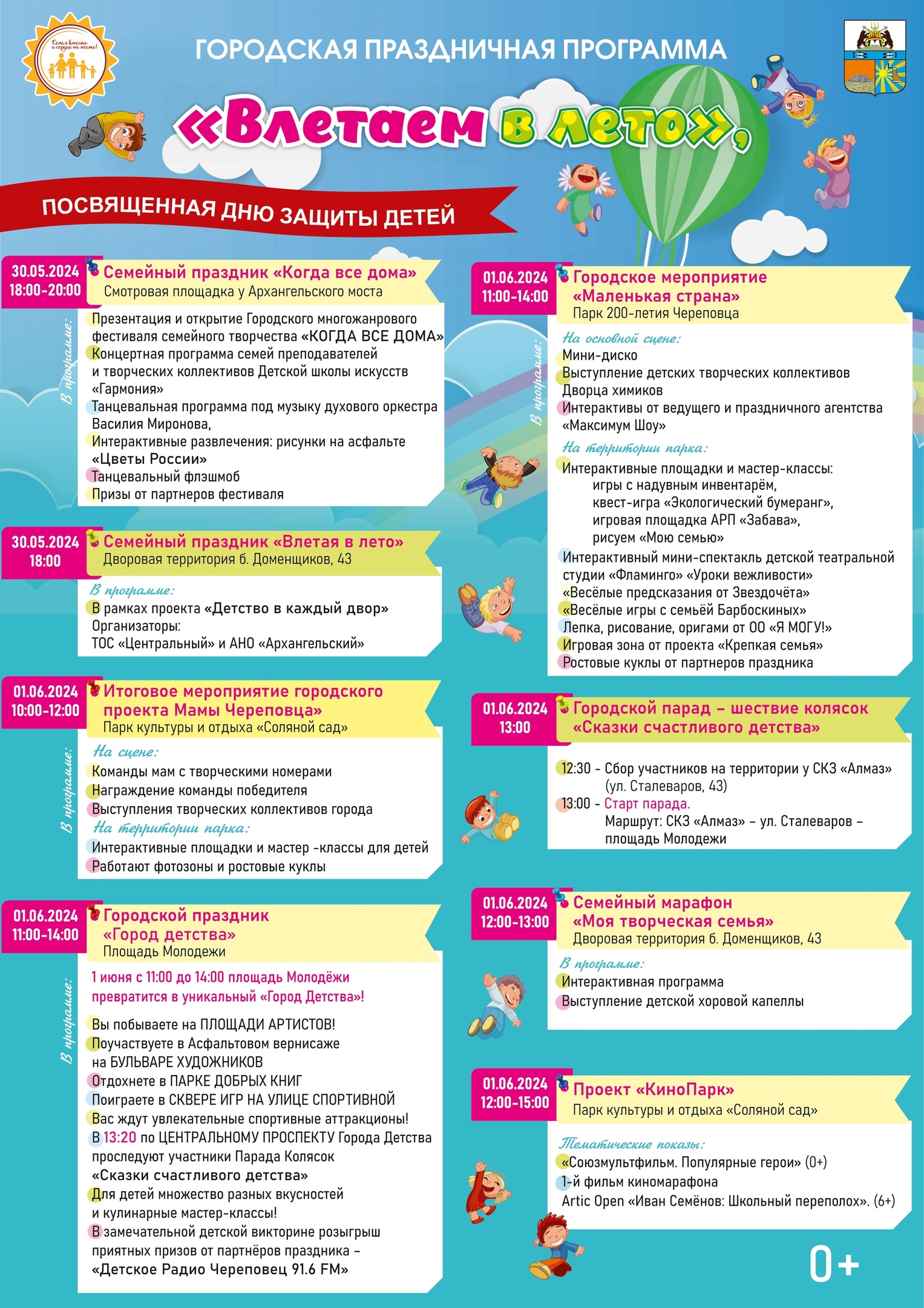 В Череповце в День защиты детей устроят бесплатные праздники