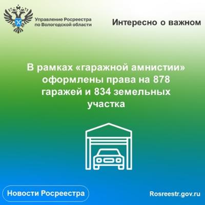 С начала действия закона о «гаражной амнистии» в Управлении Росреестра по Вологодской области зарегистрировано право собственности на 878 гаражей и 834 земельных участка.