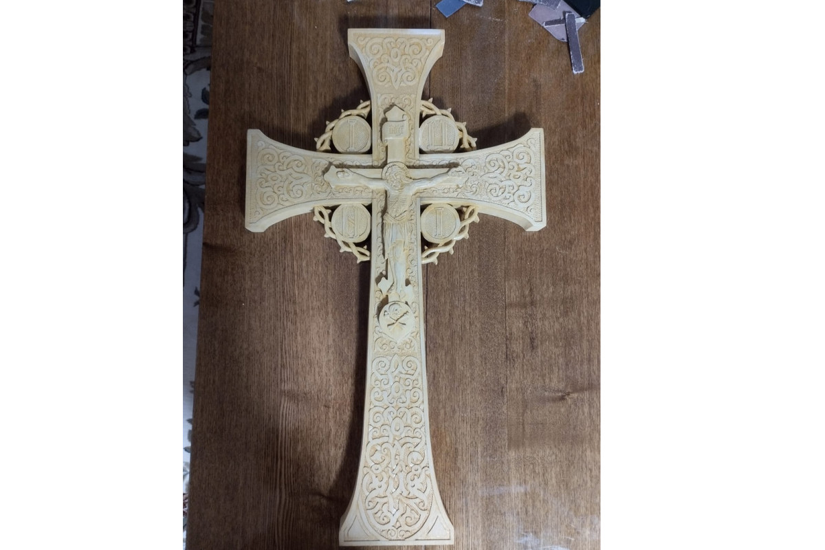 Грязовецкий художник Николай Кудряшов изготовил аналойный крест для местного деревянного храма святителя Игнатия Брянчанинова. Совсем скоро реликвия будет передана религиозному учреждению.
