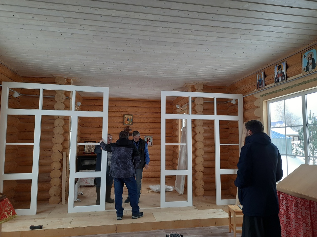 Накануне праздника в храм был привезен и установлен красивый, белый с золотом, иконостас. Его спроектировали и изготовили в столярной мастерской Спасо-Прилуцкого мужского монастыря г. Вологды.