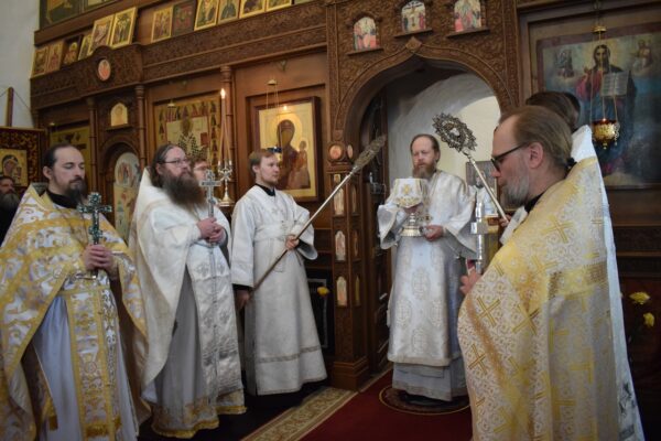На сугубой ектении были возглашены особые прошения о восстановлении мира. Владыка Савва вознёс молитву о мире на Святой Руси.