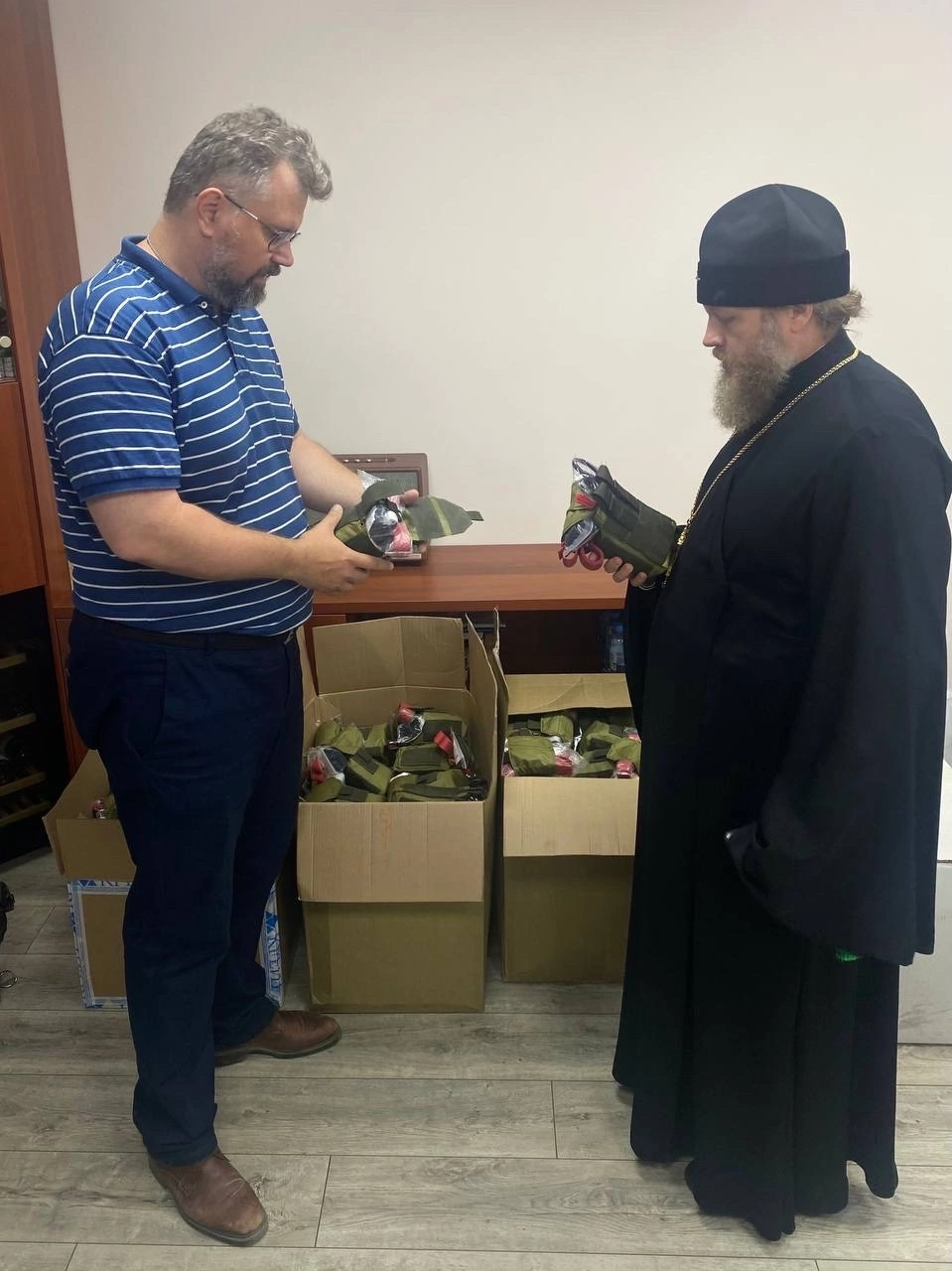 Сегодня в Вологодской митрополии были переданы закупленные материалы первой помощи для бойцов зоны СВО.