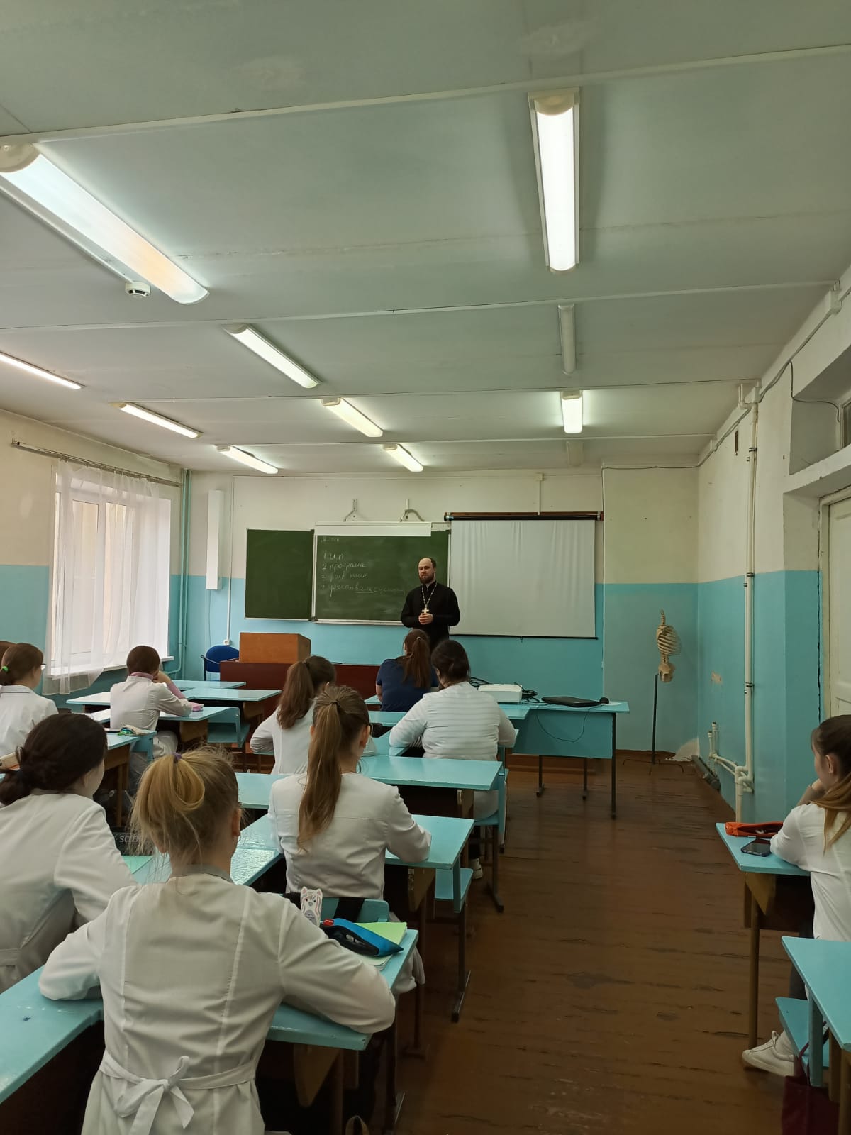 В вологодском медицинском колледже состоялась встреча студентов с заместителем руководителя миссионерского отдела Вологодской епархии иереем Иоанном Фоминым
