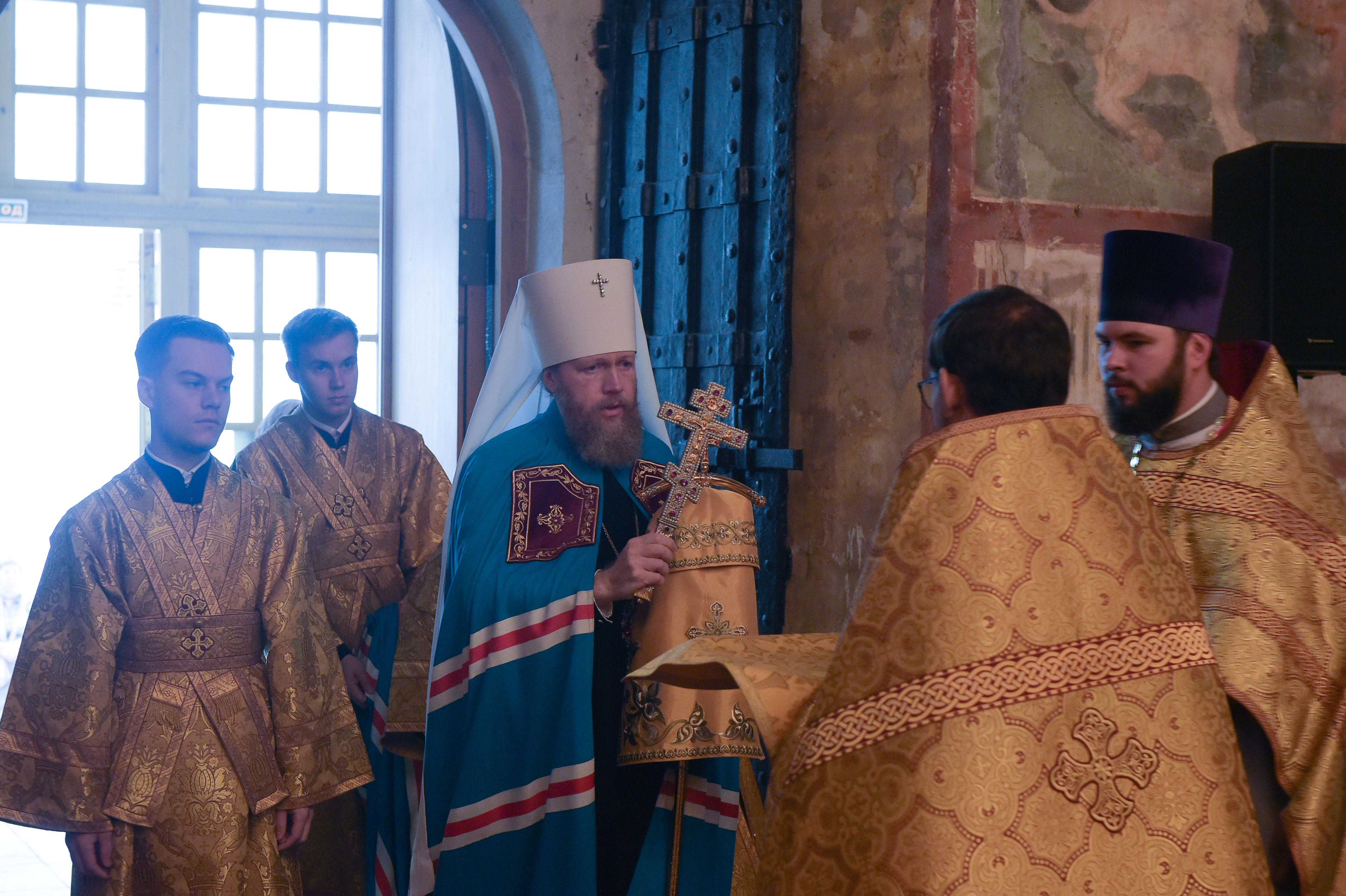 Его Высокопреосвященству сослужили: настоятель Софийского кафедрального собора протоиерей Андрей Смирнов, ключарь собора иерей Сергий Зяблицкий , руководитель Службы протокола Вологодской епархии иерей Андрей Кашинцев , клирики кафедрального собора иерей Артемий Денискин и иерей Виталий Макарявичус .