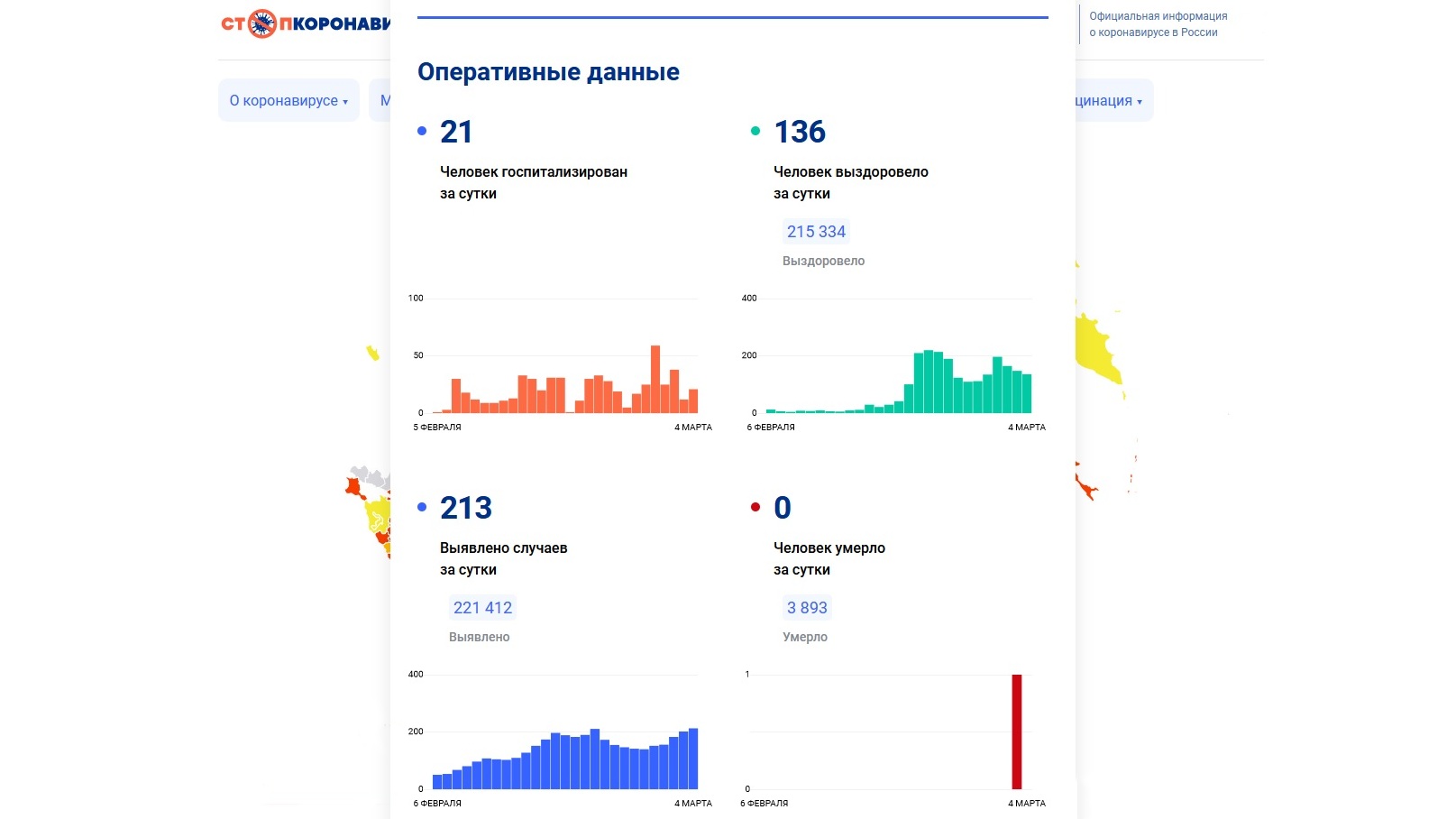 На сегодняшний день общее число заболевших вологжан составляет 221412. Из них 215334 выздоровели, 3893 умерли. Лечение продолжают 2185 заболевших.
