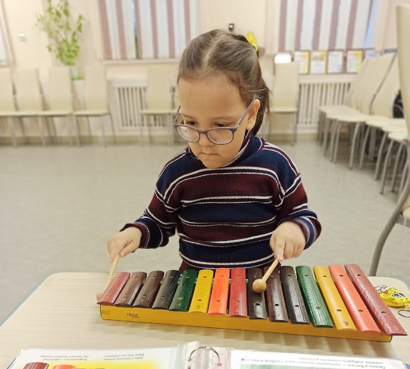 Для музыкотерапии приобретено современное музыкальное оборудование: ксилофоны, калимбы, гусли, глюкофоны, музыкальные колокольчики. Инструменты используют также воспитатели, логопеды и дефектологи с целью развития коммуникации и речи у неговорящих детей и ребят с расстройствами аутистического спектра.