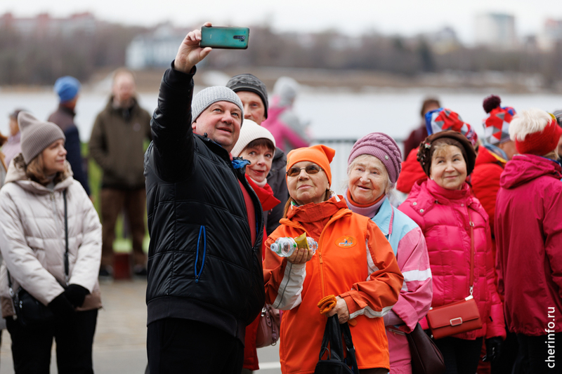 Череповчане провели общую разминку и отправились на большую прогулку по Соборной и Александровской набережной.