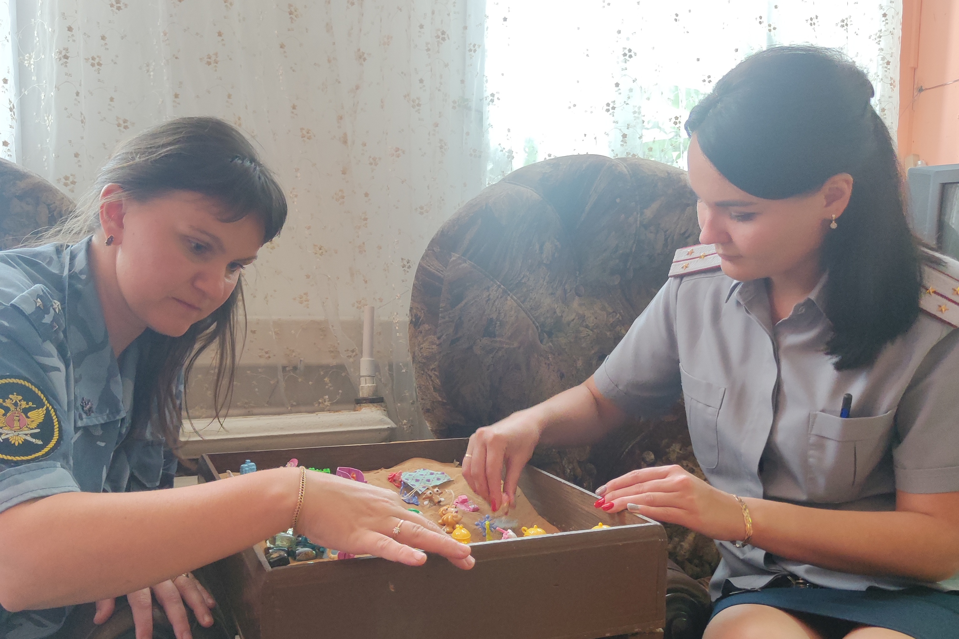 В рамках психологического сопровождения сотрудников, психолог психологической лаборатории устюженской исправительной колонии провела психокоррекционное занятие с сотрудниками учреждения с использованием песочной терапии. Цель занятия заключалась в снижении психоэмоционального и психофизического напряжения личного состава, регуляции мышечного напряжения.