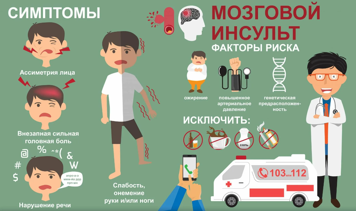 «Первыми признаками инсульта являются потеря равновесия, нарушение координации, нарушение зрения - двоение в глазах, частичная или полная потеря зрения, асимметрия лица, невозможность улыбнуться, отсутствие движений в конечностях. Если вы заметили один из симптомов, необходимо незамедлительно вызвать скорую помощь. В ближайшие четыре часа человека ещё можно спасти. Чем раньше будет вызвана скорая помощь, тем более эффективным будет лечение» , - отметил начальник Департамента здравоохранения области Алексей Плотников.
