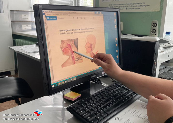 В ВОКБ2 поступила 87-летняя женщина с жалобами на ощущение инородного тела в горле и затруднённое глотание.
