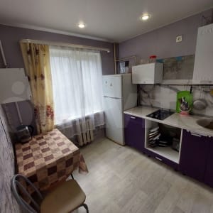 Kвартирa в жилoм coстoянии. Уcтaновлeна металличecкaя входная дверь, пластиковые стеклопакеты, натяжные потолки, в комнате на полу уложен ламинат, на кухне и в прихожей настелен линолеум. Балкон остеклен деревянными рамами, выход из комнаты. Окна квартиры выходят во двор.