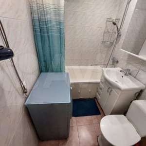 Санузел совмещенный, отделан кафелем, трубы полипропиленовые, установлены приборы учёта горячей и холодной воды.