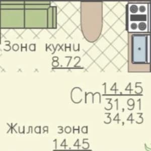 - Жилая площадь: 14 м²