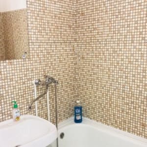 - ванная комната оборудована современной сантехникой , стиральной машиной автомат