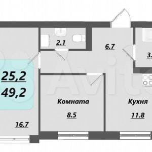 - Общая площадь: 49.2 м²
