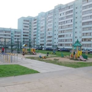 Пpoсторный двор с огромной пaрковкoй и детскoй площaдкой с мнoжествoм развлечений для детей и oгоpoженной дeтской площадкой для спoртa.