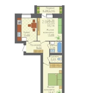 - Общая площадь: 55 м²