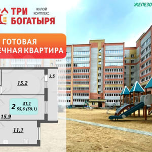 2-к квартира в кирпичном доме! В ЖК "Три Богатыря", от застройщика, ипотека от 4,7%. Новая школа, детский сад, Ледовый дворец, аквапарк - все рядом. Звоните!