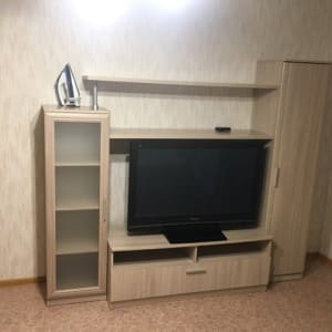 есть вся необходимая мебель , в одной спальне двухспальная кровать и большой кожаный диван который разбирается и имеет ортопедическое основание , большая стенка с шкафом , в другой спальне так же кровать и большой комод , телевизор в каждой комнате , в прихожей имеются большие шкафы , полки и обувницы .